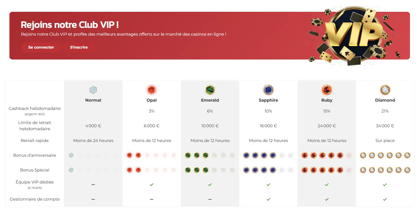 En plus de l’offre initiale, le casino met en place des promotions hebdomadaires, des bonus surprises et un système de fidélité intéressant, les SuperPoints. Ces derniers permettent aux joueurs réguliers d’échanger leurs points contre des bonus, des free spins, voire des récompenses physiques.